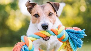 اسباببازیهای تعاملی مثل طناببازی را فقط زمانی در اختیار سگ بگذارید که خودتان مراقب هستید یا قصد بازی با او را دارید و بعد از اتمام بازی، آنها را جمع کنید.
