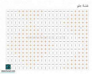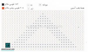 برای بافت قسمت جلوی سمت چپ، رنگها را جابهجا کنید: یعنی قسمتهای طوسی را با نخ طوسی روشن و قسمتهای طوسی روشن را با نخ طوسی ساده ببافید.