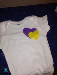 لباس بچه که با دوخت نمد تزئین شده، حالا کاملاً آماده است.