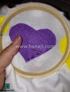 بعد از اینکه طرحهای نمدی را اتو کردید، مطابق الگویی که دوست دارید، آنها را روی لباس قرار دهید. سپس با استفاده از سوزنهای تهگرد، هر قطعه را در جای خود محکم کنید.