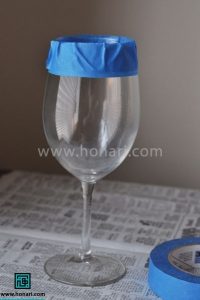 روی لبه لیوان (همان قسمتی که نباید چسب به آن برخورد کند) را با نوار چسب میپوشانیم.