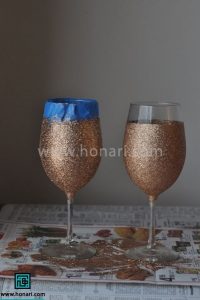 در مرحله هشتم، با یک اکلیل به رنگ دیگر، مانند مرحله قبل، روی قسمتهایی که چسب زدهاید، اکلیل بپاشید.