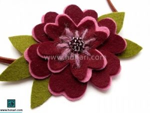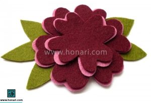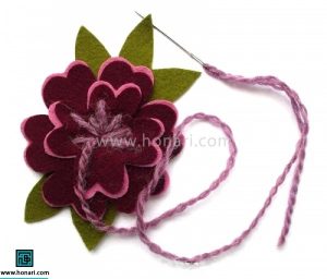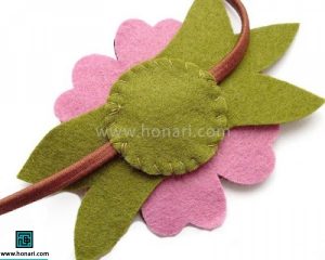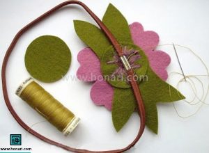 وقتی قسمت گلبرگ آماده شد، آن را به برگ و کاسبرگ که از نمد سبز درست کردهایم، وصل میکنیم.