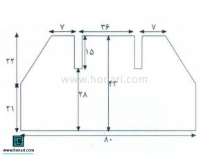ردیف ششم: در این مرحله رنگ نخ را عوض میکنیم و در تمام دور موتیف، 30 عدد پایه سوبل میبافیم.