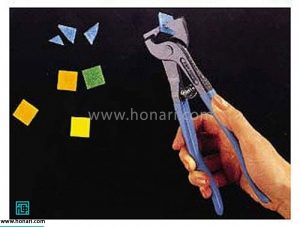 با کمک انبر مخصوص، کاشیها را به قطعات ریزتر تقسیم میکنیم.