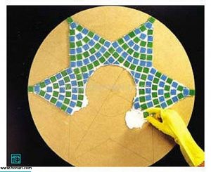 سطح مورد نظر را با چسب چوب آغشته کرده و تکههای کاشی شکسته را در جای اصلی خود محکم میچسبانیم.