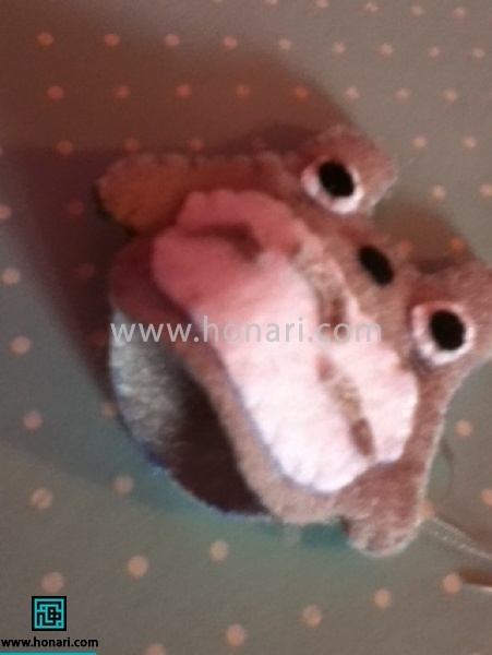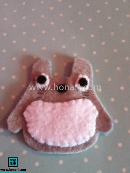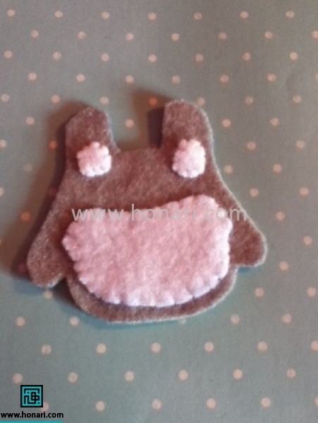 باقی قطعات تزیینی سنجاب نمدی را هم با دقت و حوصده سر جای خودشان میدوزیم.