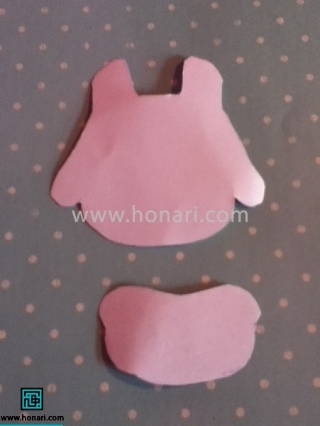 در مرحله دوم، ابتدا نقشه و طرح دلخواه را روی کاغذ یا مقوا رسم کنید یا از پرینت آن استفاده کنید. سپس آن را با قیچی به دقت ببرید تا الگوی مورد نیاز برای دوخت عروسک سنجاب نمدی شما آماده شود.