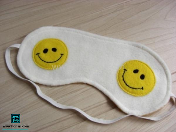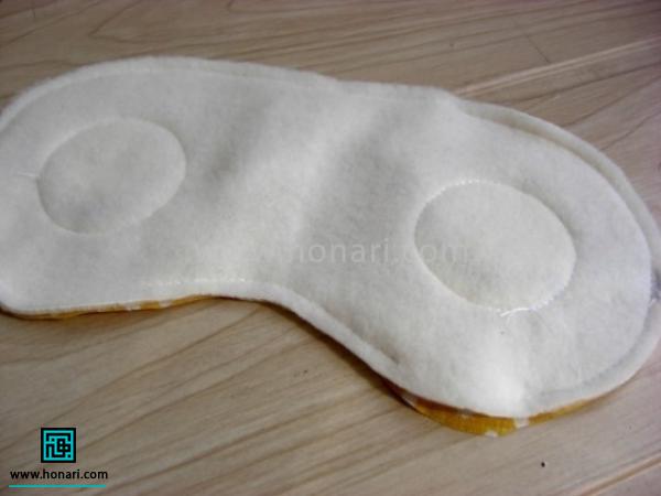 وقتی که پارچه را به پشت برمی‌گردانیم، قسمتی که باز مانده را می‌دوزیم. در پایان، چشم‌بند به شکلی که در تصویر می‌بینید درمی‌آید.