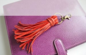 مرحله اول: حدود ۱۲ متر تریشه را ببرید و آن را دور یک کتاب یا وسیلهای که طول آن دو برابر اندازهای باشد که برای منگوله در نظر گرفتهاید، بپیچید.