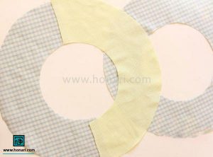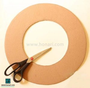 حالا با قیچی، قسمت وسط الگو را به دقت میبریم. به این ترتیب، الگوی حلقهای نمدی ما کامل میشود.