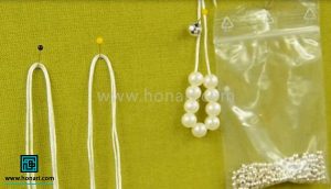 وسایل مورد نیاز برای این دستبند عبارتاند از: نخ مخصوص دستبندبافی، مروارید و منجوق.