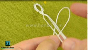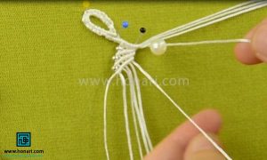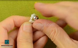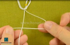در این مرحله، یک گره به اندازهی مهرهای که برای قفل دستبند در نظر گرفتهایم، میزنیم. با این کار، حلقهای برای قرار گرفتن قفل ایجاد میکنیم.