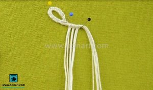 در این مرحله، در دسته سمت راست چهار تار نخ و در دسته سمت چپ شش تار نخ خواهیم داشت.