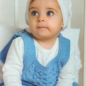 ۱۵ دانه دو طرف (برای سرشانه) را هم به مدت ۱۲ سانتیمتر میبافیم، روی سرشانهها یک جای دکمه ایجاد کرده و در پایان کار را کور میکنیم.