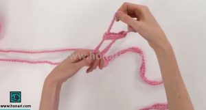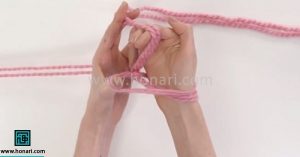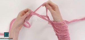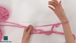 در مرحله دوم کار، پیشنهاد می‌شود که به جای یک کلاف، همزمان از دو کلاف کاموا استفاده کنید.