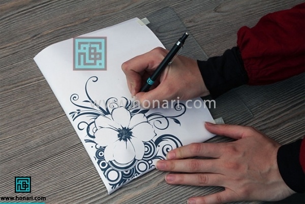 برای نقش انداختن طرح روی ظرف، از کاغذ کاربن بهره می‌گیریم.