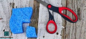 بعد، یک اسفنج بردارید و آن را مانند تصویری که در ادامه میبینید، ببرید.
