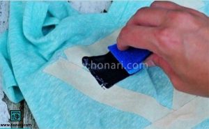 در گام نخست، برای مشخص کردن منطقه مورد نظر، با استفاده از چسب، دور آن را خطکشی میکنیم.