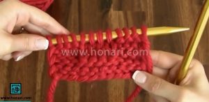 برای بافت، طوری عمل کنید که دانه‌های مربوط به قسمت پیچ در زیر کار قرار بگیرند و دانه‌های سمت چپ و راست آن به رو بافت شوند.
