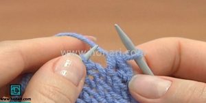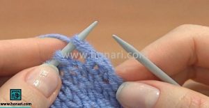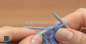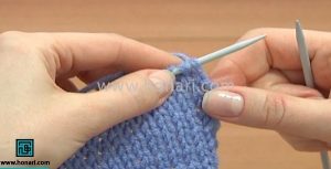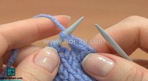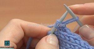 حالا دانهای که تازه بافتید و روی میل سمت راست قرار دارد را به میل دست چپ منتقل کنید.