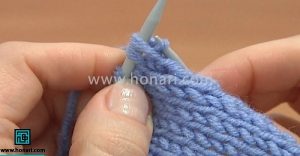 دوباره دانهای که تازه بافتید را از میل بافندگی دست راستتان بردارید و به میل بافندگی دست چپتان منتقل کنید.